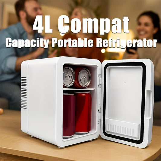 1.06gal Portable Mini Fridge - Compact Cooler for 6 Cans in Dorms & Offices